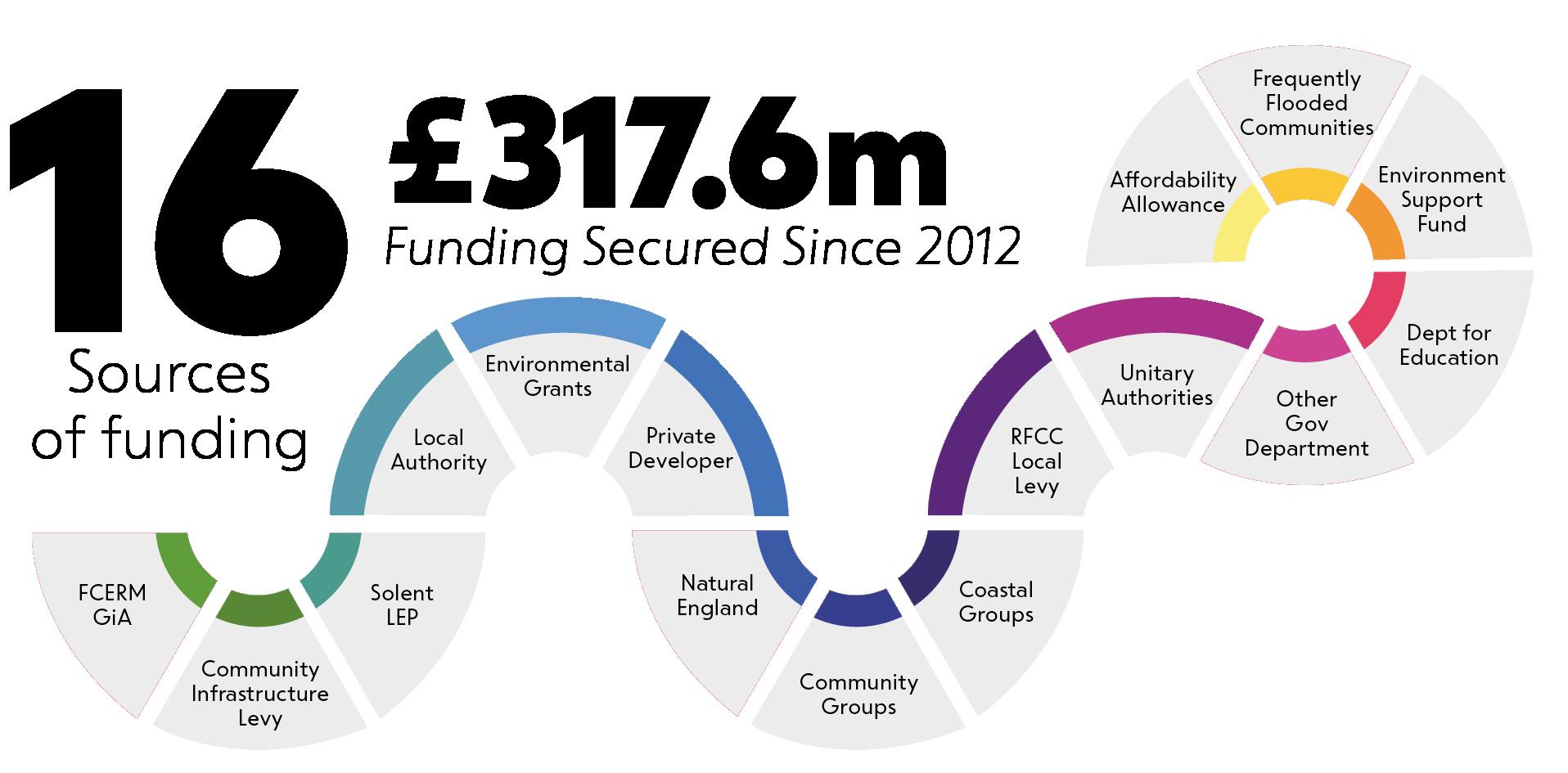 Alongside this, by working in partnership and aligning objectives with other organisations, we create the opportunity to attract alternative or additional funding towards schemes that might otherwise not progress due to funding shortfalls. Since 2012 we have endeavoured to utilise a broad range of investments to help address climate change. This inclusive philosophy has allowed us to be successful in securing over £317.6 million from 16 different sources of funding.