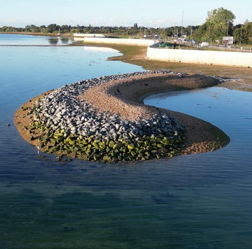 The North Portsea Coastal Scheme (pp 20 & 21) saw the completion of Phase 4, Eastern Road along with many integrating environmental improvements, such as the creation of a roosting island specifically to entice overwintering birds. Tidal pools were installed to encourage new habitats and ecosystems, as well a textured sea wall (Ecoformliner) creating opportunities for marine animals and plants to flourish.