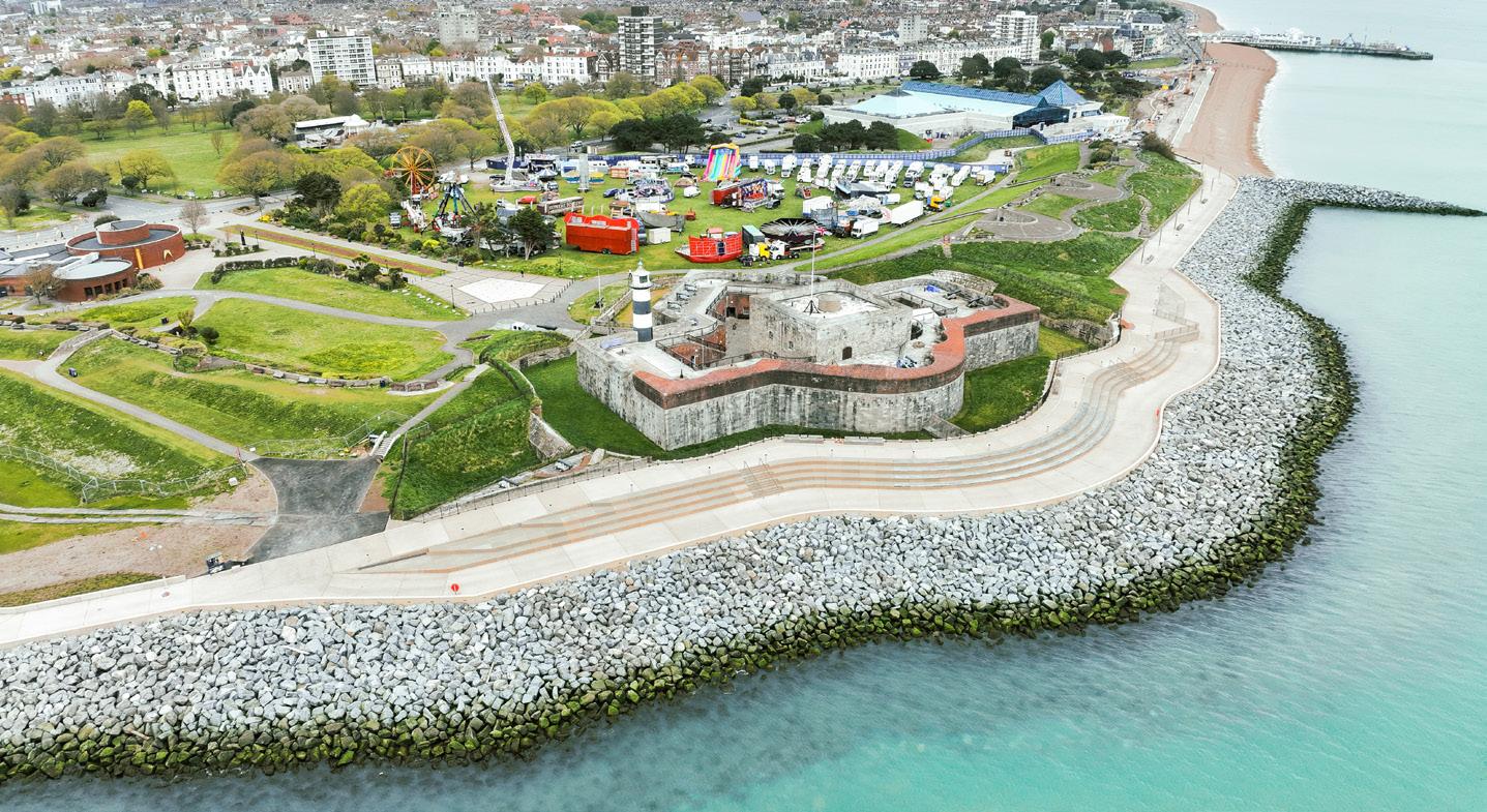 The multi-award-winning Southsea Coastal Scheme is the UK’s largest local authorityled coastal defences project, worth £180M. The Portsmouth City Council project will stretch for 4.5km from Old Portsmouth to Eastney and help to reduce the risk of flooding to more than 10,000 homes and 700 businesses.