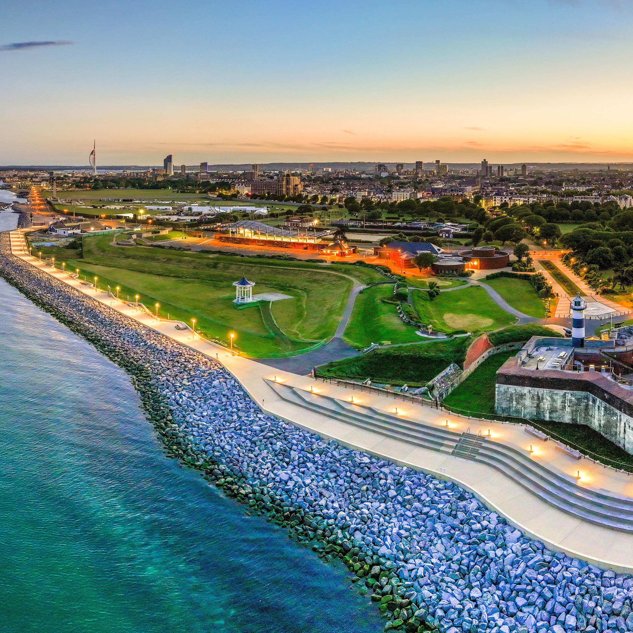 In May 2024 the second phase (of six) of the scheme around Southsea Castle opened. This popular area features a greatly enhanced promenade that has been dubbed the ‘Theatre of the Sea’ due to its new split-level terraced seating and amazing views across the Solent. The first phase of the scheme at historic Long Curtain Moat opened in February 2023 and is very popular with the public who are enjoying the way that historic finds and original-look materials have been seamlessly integrated with the sea defences.