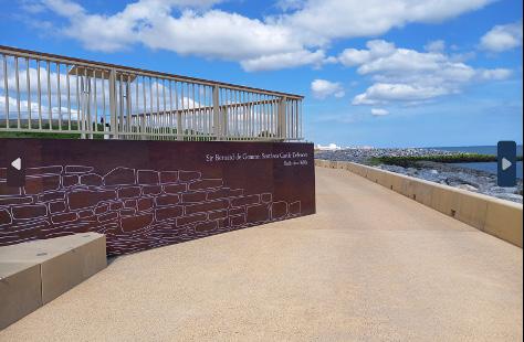 Unearthed historic structures are incorporated into the works where possible. Around Southsea Castle, the promenade design was altered to include a historic triangular defence structure designed by the Dutch engineer Bernard De Gomme, uncovered during construction work. Visitors to Long Curtain Moat can see a section of the original 17th century city walls and defences, as well as original masons’ marks inscribed on the stones. Interpretation signage explains the historic elements.