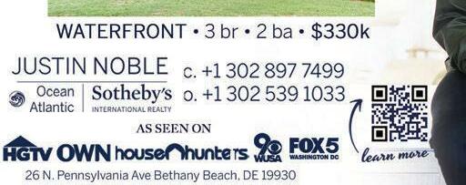 WORK with an AGENT WHO KNOWS The MARKET! * Over 38 YEARS of Experience in DE & MD Sales * Associate Broker: DE & MD * CRS: Certi ed Residential Specialist * GRI: Graduate REALTOR Institute * SRES: Senior Real Estate Specialist Lifetime Achievement Winner! Cindy Spieczny (c) 302-228-1450 Email: Fenwickstar@yahoo.com UNDERCONTRACT! UNDERCONTRACT! 37464 PETTINARO DR. #7202 Enjoy incredible sunsets over Collins Creek from this beautifully renovated first-floor end condo. Granite kitchen counters, stainless appliances, double oven, contrasting cabinets with upgraded interior organizers and new LVP flooring are just a few of the features. This condo is ready for you to start making your beach memories today! $370,000 (DESU2028634) Call Shelby Smith (c) 856-236-0469 NEWLISTING! 46 SANDY BRANCH DR,SELBYVILLE Just Reduced- Amazing value-sprawling 4 bed, 4 bath, 2900 sq ft open concept home with rst oor living, 2 primary suites (one upstairs, one downstairs) separate of ce, huge loft space, 2 car garage, screened porch, paved patio, front porch, 2 car garage, fenced in backyard, low HOAplenty of room for family and friends. Short drive to beach, restaurants, shopping, entertainment, golf. Asking $475,000 (DESU2025208) Call Chrisy Tingle (c) 302-377-4159 MILLVILLEBY THESEA DREAMINGOFA HOMEATTHEBEACH? OPENHOUSE SUN.,9/18•11–1PM LOT 1 JONES RD One of a kind 1850sqft cottage oorplan including vaulted ceilings, 3 bedrooms, 2 bathrooms, full font porch, additional storage space n garage and a covered back porch. Located on 1.6 acres. Minutes from Bethany Beach. $577,890 (DESU2027406) Call Christina Antonioli (c) 302-542-9152 or Call Laurie Mcfaul (c) 443-254-1863 NEWCONSTRUCTION! Looking to Buy or Sell? Logan Burke (c) 443-797-9217 logan.burke@kw.com Let my work ethic work for you. 39683 ROUND ROBIN WAY #3607 Turnkey, crisp & refreshing and ready to start enjoying - east of Kent Ave in Sea Colony's Beach & Tennis Community! Featuring an open floor plan, this bright and sunny, 3 bedroom, end unit in a superb location offers easy access to all of Sea Colony's top notch amenities. Sold tastefully updated and furnished! $649,000 (DESU2027890) Sarah Schifano (c) 302-858-3945 31 BRIDGE RD, SOUTH BETHANY Adorable Beach Cottage in the Private Beach of South Bethany Beach, in MIDDLESEX !! This 3 BR, 2 full bath home is A GREAT INVESTMENT, or purchase keep and let the home make you money then build your DREAM HOME !! Walking distance of Downtown Bethany Beach .. a fantastic Lot can be enjoyed by ALL! $1,450,000 (DESU2024064) Call Jane Baxter-Miller (c) 302-245-8831 janesellsde@gmail.com ONLYPRIVATE BEACHIN S.BETHANY UPGRADED ENDUNIT