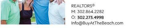 64 CoastalPoint February3,2023 For a con dential interview about starting your Real Estate Career call us today! Carrie Cosgrove (c) 302-339-5519 • Email: ccosgrove@kw.com | Rutica Patel (c) 252-623-8806 • Email: realtorrutica@gmail.com 31252 American Pkwy. Selbyville, DE 105 High St. Seaford, DE 37169 Rehoboth Ave. #11 Rehoboth Beach, DE 39682 Sunrise Ct. Bethany Beach, DE