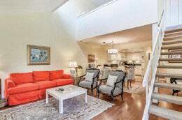 Bright end unit villa in pristine condition, with an airy interior, vaulted ceilings, garage and rear deck offering seclusion in a scenic wood setting. Features a 1st oor MBR with ensuite bath. The upstairs features 2 additional guest rooms and full bath with an open loft which can be used as additional sleeping space or of ce. Community is just a short bike or drive to Bethany Beach and only minutes to Fenwick Island.