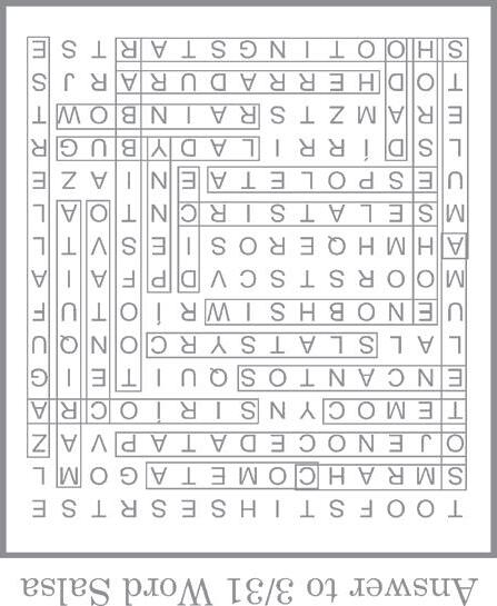 Kids Across kris@kapd.com KAPD ebooks now available on www.kapd.com 4/2/23 © 2023 KAPD, ANSWER (HOLD UP TO MIRROR) Jumbles: Answer: cub bell tree germ Greece THAT SCRAMBLED WORD GAME! ® By David L. Hoyt and Jeff Knurek The letters of these crazy words are all mixed up. To play the game, put them back into the right order so that they make real words you can find in your dictionary. Write the letters of each real word under each crazy word, but only one letter to a square. you can put them in order so that they make your funny answer. Getthefree JUSTJUMBLE @PlayJumble UCB ERTE EGMR LEBL ©2023 Tribune Content Agency, LLC Print your answer here:
