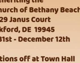 MUMC Christmas Bazaar – Millville United Women in Faith will host their Annual Christmas Bazaar & Bake Sale.in the church’s Wesley Hall at Featuring Christmas decorations, homemade crafts, wreaths, jewelry, and homemade lunches & baked goods for sale. All proceeds benefit local mission projects. 36405 Club House Road, Millville, DE 19967