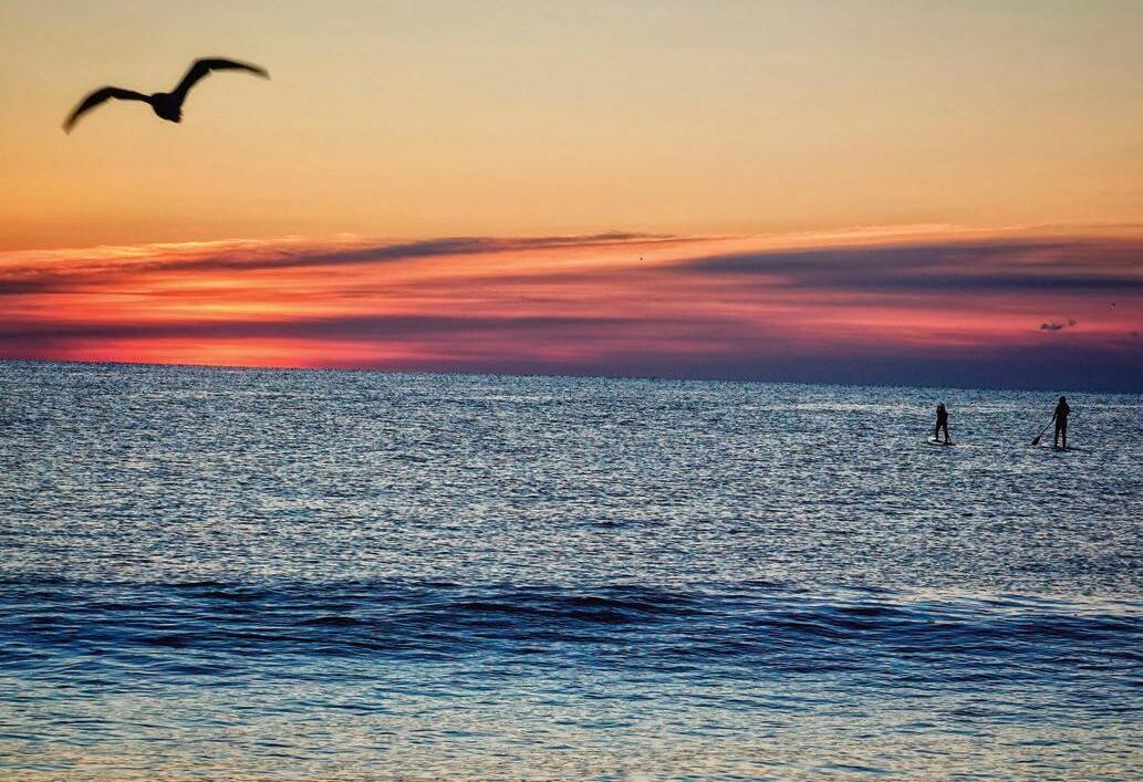 Ourrovingphotographerfriendcameacrossthisbreathtakingsceneofapairofpaddleboardersandaseagullenjoyinga stunningmorning.