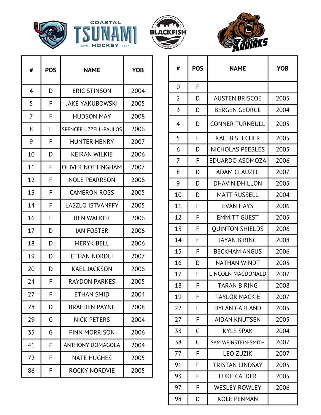 The Coastal Tsunami (3-1) finish the weekend with a home game against the Aldergrove Kodiaks (0-5).