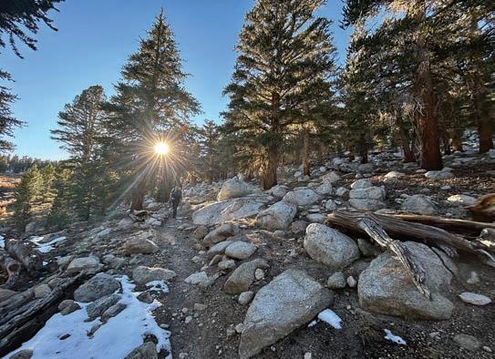 After reaching the crest of New Army Pass at around 8 p.m., Forrest and I hunkered down in the granite and snow. Forrest had a one-man tent and slept in a gravelly gully. I slept just above, behind a granite slab on the ground, but I forgot my air mattress. I settled for my foam pad, a blanket and my sleeping bag, good enough for one night of freezing my tail off. o sleep or half sleep for me as streaks of shooting stars flashed across the Eastern Sierra.