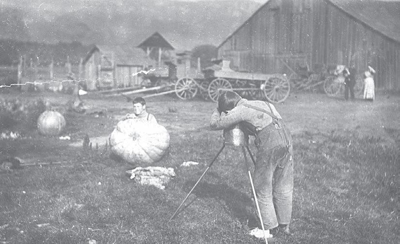 Here’s what we know: It’s a Senteney family photo from the “Franklin Place.” There’s a boy posing behind a giant pumpkin and another behind what looks like a primitive camera. Readers, we need your help. Anyone who has more information about the contents of this historic local photo — or even some educated guesses — should email news@coastalview.com.