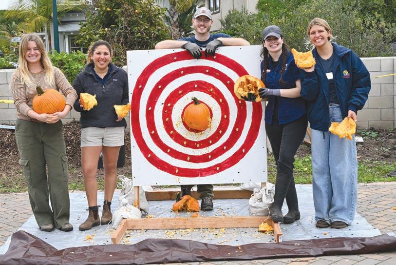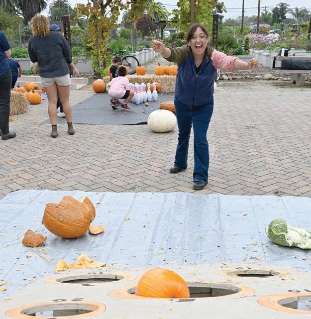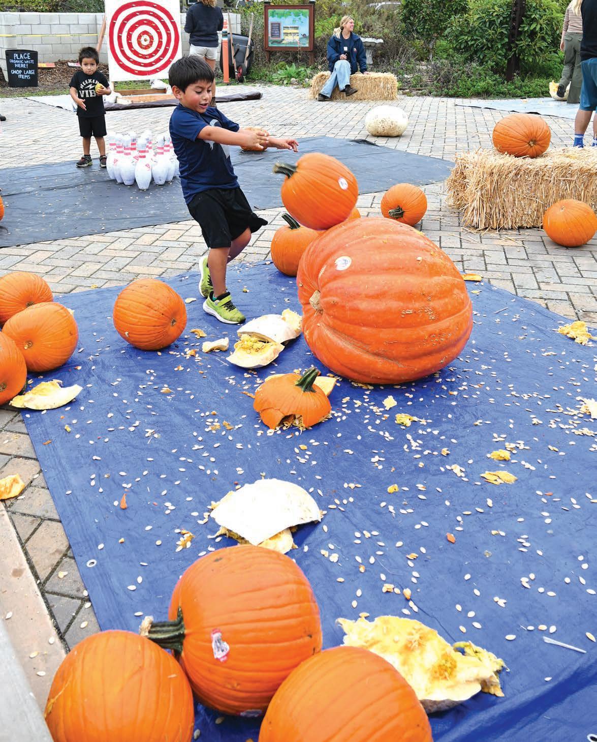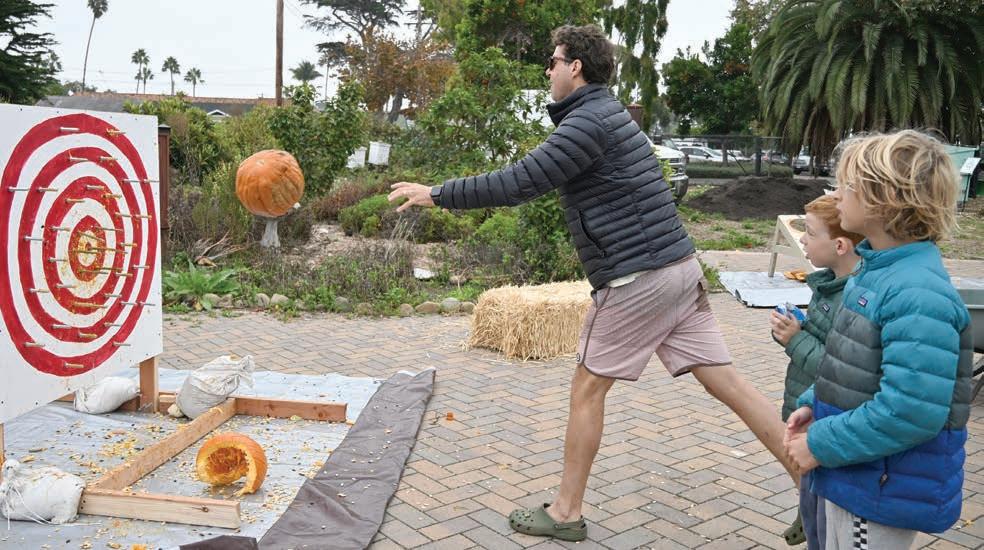 At front, Sante hurls a pumpkin into the ground, successfully turning a once-decorated jack-o-lantern into helpful compost and animal feed for Carpinteria s gardens and animals. Sante, his siblings and other Carpinterians spent their Saturday after Halloween smashing pumpkins at the Carpinteria Community Garden, preventing those Halloween pumpkins from going to waste. See more photos of the city s third annual Pumpkin Smash on page of this week s print.