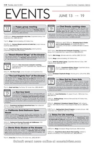 6:30 p.m., Bingo, Sandpiper Village Clubhouse, 3950 Via Real 6:30 p.m., Carpinteria Library Book Club meeting, Children’s Section of the library, 5141 Carpinteria Ave., (805) 684-4314