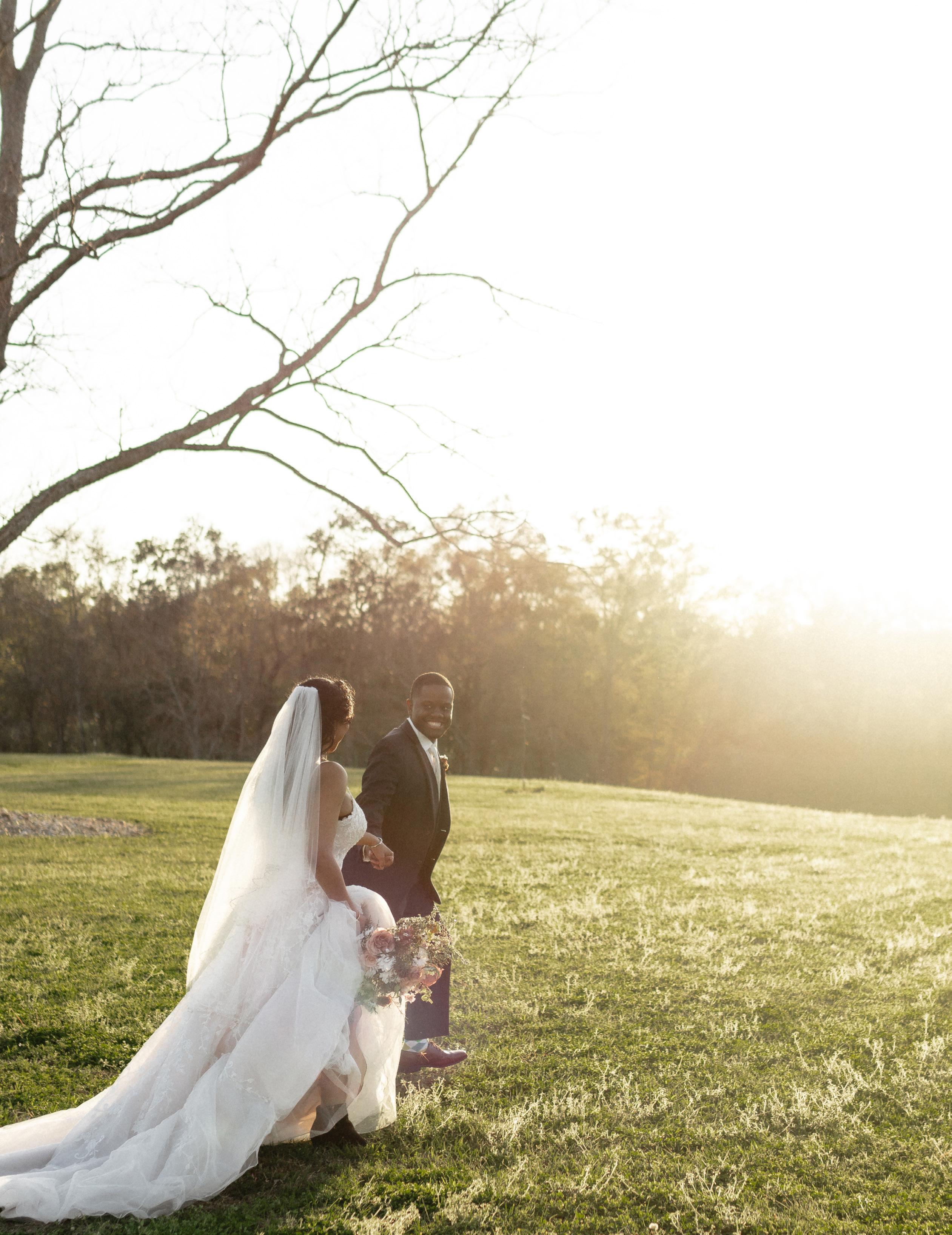Driving farther and farther out of the city, the speed limit slows, the cars around you dwindle, and then… you see it. Gorgeous acres of pecan trees and white fences. Upon turning into The Orchards, a long driveway leads you through the property, past the glass house, the bridal suite, the greenhouse, and to a lush open field. Our team was trilled to capture the Fall 2024 cover photos at this one-of-a-kind venue.