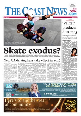 Arts & Entertainment . . A9 Calendar . . . . . . . . . . . . A9 Camp Pendleton News . . B11 Coastal Cosmos . . . . . . . B2 Classifieds . . . . . . . . . . B17 Eye Spy . . . . . . . . . . . . . A11 Hit the Road . . . . . . . . B10 Lick the Plate . . . . . . . B12 Life, Liberty, Leadership . . A4 Obituaries . . . . . . . . . . B13 Odd Files . . . . . . . . . . . . A3 Opinion . . . . . . . . . . . . . A4 Pet Central . . . . . . . . . . A16 Sea Notes . . . . . . . . . . . A10 Small Talk . . . . . . . . . . . B1 Sports . . . . . . . . . . . . . A18 Taste of Wine . . . . . . . B10 Who’s News? . . . . . . . . A17