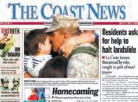 CLASSIFIED AD RATES DEADLINES 25¢ a word Place your own print ad at Copy and Cancellations FRIDAY (DISPLAY), MONDAY (LINERS) 4PM Ask for Classified Dept. 760-436-9737 ext. 100 or fax ad copy 760-0943-0850 To view or place ads online go to thecoastnews.com or stop by office at: 315 S. Coast Hwy. 101, Encinitas CLASSIFIED LINE AD RATES: Call for information. LINE ADS RUN IN ALL 3 PAPERS 120,000 READERS Place your own line ad online at thecoastnews.com Line ads run both publications. Display classifieds run Coast News, 22,000 RSF 10,000 INLAND 10,000 Per Paper Display PCI 1-2 wks 3 wks 6 wks 12 wks 26 wks 52 wks $40 $36 $32 $28 $24 $20 1/2 OFF SECOND PAPER BUY 120,000 READERS EVERY WEEK!* REACH MORE THAN 25¢ per word line ads, 15 word minimum. When YOU place your ad online at thecoastnews.com if you want US to do the work, it’s $1 per word, 15 word minimum. Call 760-436-9737 x100 SERVICES WANTED ENCINITAS, Sophia Ceja, Oceanside, shows handful eggs found. city egg are Promise Carlsbad’s includes addition buildings. new shown apartments, and Carlsbad retail center to be revampedwithapartments Stine CARLSBAD storefrontempty years, 33-year-old Center getting revamp. The the gainedapprovalmolish commercialstructures shoppingter them buildings and apartments Carlsbad’sPlanning - Planning16.Commissioners the for forward plans redevelop shopcenter said lacksand tenant. “(La Towne just long wall. idea inside, inviting,” said CommissionerHap “Thister long Commissioner Neil eyesore. H reacH 436-9737 Calendar Calendar@coastnewsgroup.com Community Community@coastnewsgroup.com Letters@coastnewsgroup.com TwoSections 48pages A&E..................... Classifieds.......... Food Legals.................. Opinion................A4 Sports.................. Mosaic, Patterson has up SurfingMessageremains Eden - nity’s commitment youth. takes “green teams” Council closer to finalizing Pacific View deal Whitlock ENCINITAS council step acquiring - Wednesday Council deposit other conditions out memoran- understanding proper- document way final agreement,whichcouncilmajority approve theMay. item debate whether have agreed $10 million the the Encinitas School Eddingtonsaid excited prospect the owning site, the - city“bamboozled.” million property offeringnot-too-distant times said. Councilman Tonyvocate purchase, $4.3 million was theerty’s public was intended offer. Additionally, said- EUSD strong which land Themore have fight rezone but would havepensive battle, added. month, was $9.5 With the submitted before deadline. has delayed by safeguard, case with Elementary,- understanding Wednesday bringing Center to be part of housing project OCEANSIDE - grant fund ParkeraffordableplannedResourceCenter bought Community centerhave low-income hous- project, equally of beloved, housing helpedhusband the April said - center The affordable housing mixed-use project - sion beingthe - Community RenaisgroundThenonprofitdeveloper.break summer.2014 INLAND EDITION com WECAN PUBLISH YOUR LEGAL ADVERTISING •Fictitious Business Names •Name Changes •Lien Sales •Alcoholic Beverages License •Petitions for Probate •Trustee Sales •SummonsDivorce •Annual Report •Non-Responsibility •Dissolution of Partnership Call The Coast News 760-436-9737 CLASSIFIEDS 25¢a word Place your own print ad at thecoastnews.com PUT THE POWER OF PRINT TO WORK FOR YOU! 25¢ per word line ads, 15 word minimum.When YOU place your ad online at: thecoastnews.com If you want us to do the work, it’s $1 per word, 15 word minimum. Call Suzanne at 760.436.9737 x100