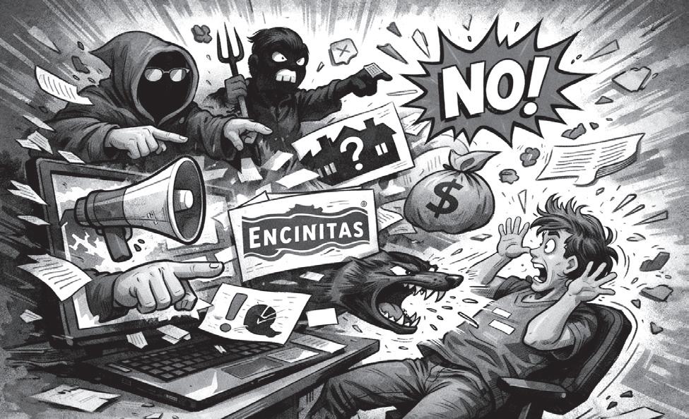 sourcing and credibility. Most alarming is when those anonymous accounts materially benefit elected officials while hiding who’s behind the curtain. SaveEncinitasNow and EncinitasVotes, Instagram accounts that have repeatedly refused to disclose their ownership or affiliations, link directly to Councilmember Luke Shaffer’s legal defense fund.