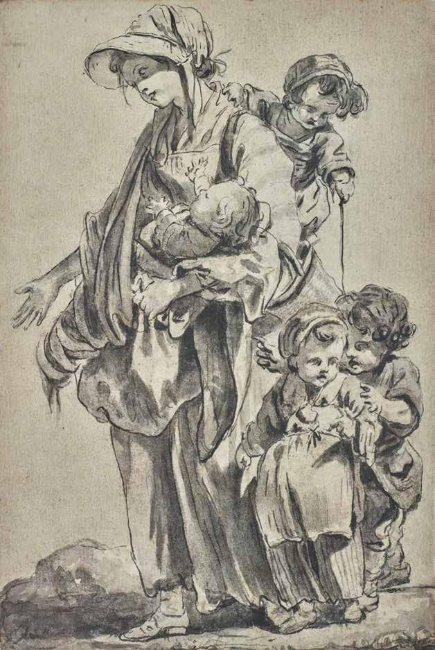 Plus subtilement, ce caractère narratif est perceptible dans l’ensemble de la production de Greuze, au-delà même des diptyques, comme celui du Départ et du Retour de la nourrice, conçu dans les mêmes années et connu par de nombreux dessins (cat. 17, cat. 18 et ill. 10) qui constituent autant de variations sur ces thèmes, mais dont il n’existe pas de version peinte. Leur font écho, moins dans une logique de récit linéaire que de contrepoint, le tableau La Mère bien aimée 29 [ill. 11], exposé au Salon de 1769, ainsi que les études qui le précèdent. Cette composition aborde elle aussi le sujet de la maternité à proprement parler mais elle met en scène une toute autre relation de la mère à ses enfants