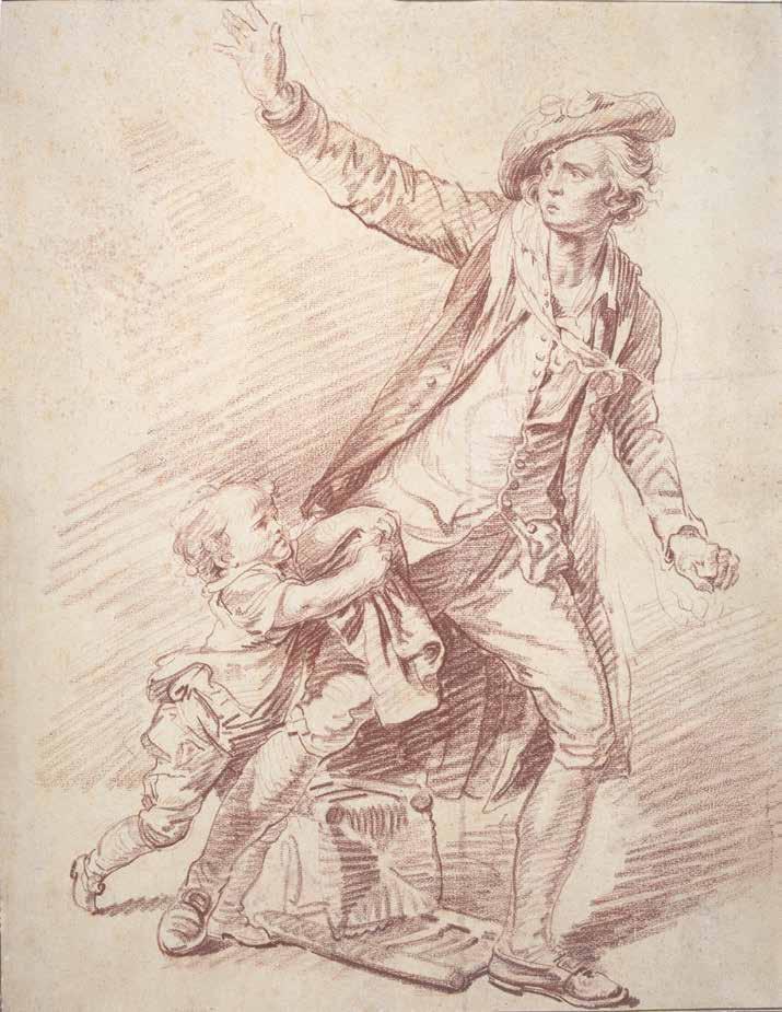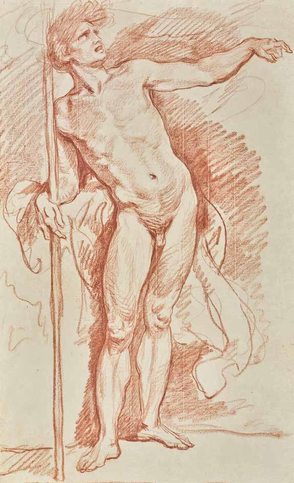 ill. 4 - Jean-Baptiste Greuze, Étude d’homme debout les bras écartés tenant de la main droite un fusil , sanguine sur papier vergé, H. 48,5 ; L. 32,3 cm, SaintPétersbourg, musée de l’Ermitage, inv. P-14764.