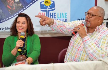 Governor Gretchen Whitmer and Rev. Sheffield at an On the Line Broadcast.