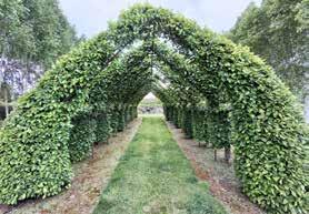 rider Camelia, Chatham Island Nikau – the list goes on. With good volcanic ash for soil, and 80cm of annual rainfall, everything grows well. Perennial borders filled with herbaceous plants provide colour at varying heights and types, making a picturesque cottage garden theme near the house. Through the woodlands area and scattered among the rhododendrons were hydrangeas – Bloody Marvellous and a Yellow ’sport’ which exists in only shady areas and has a pale lemon-yellow flower, being