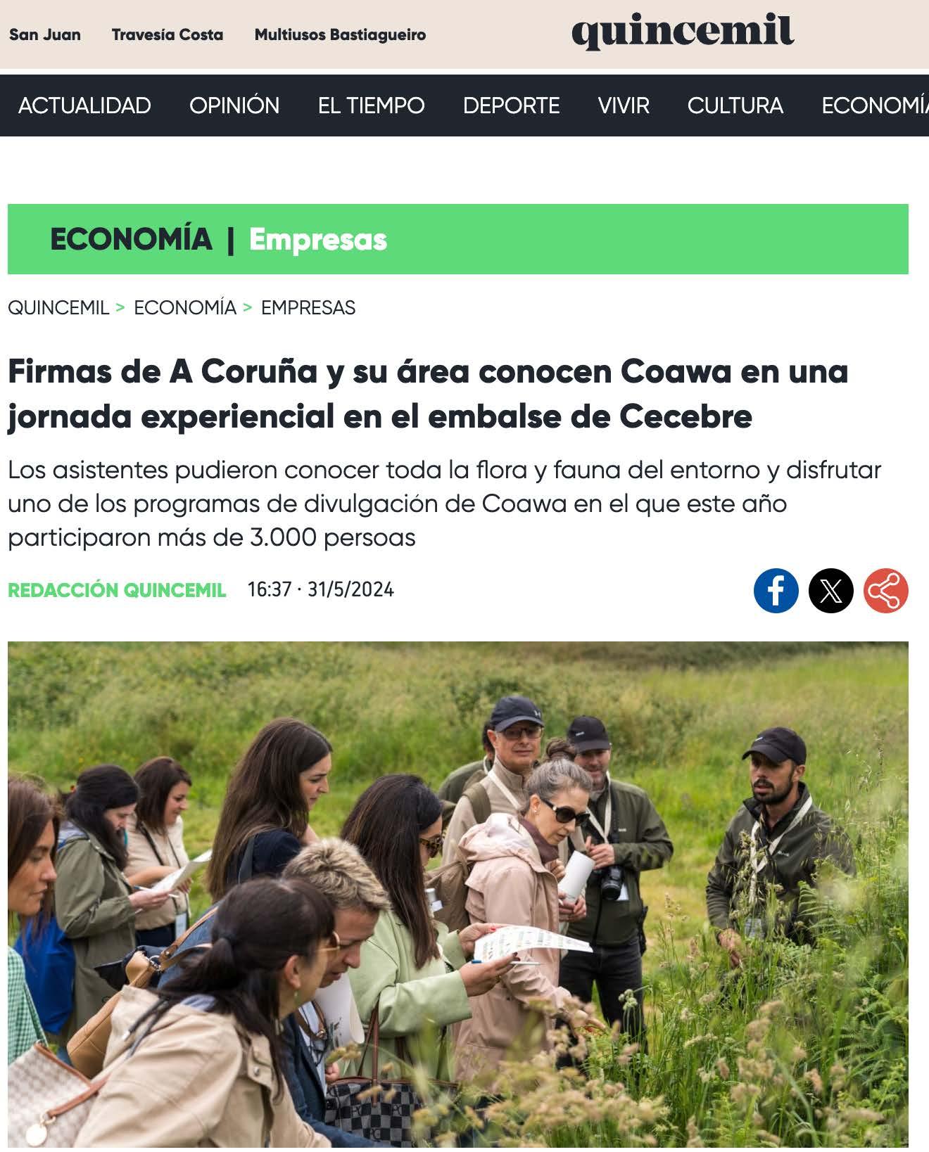 Representantes de Corporación Hijos de Rivera, Museo Estrella Galicia (MEGA), Repsol, Marineda City, Ecoembes, Fundación Nortempo, Genesal Energy, Tac, La Opinión, Asociación de Empresarios de A Grela, Asociación de Empresarios de Pocomaco y Asociación de Empresarios de Bergondo pudieron conocer, a través de una ruta interpretativa, el entorno del embalse de Cecebre y los objetivos de divulgación de Coawa.