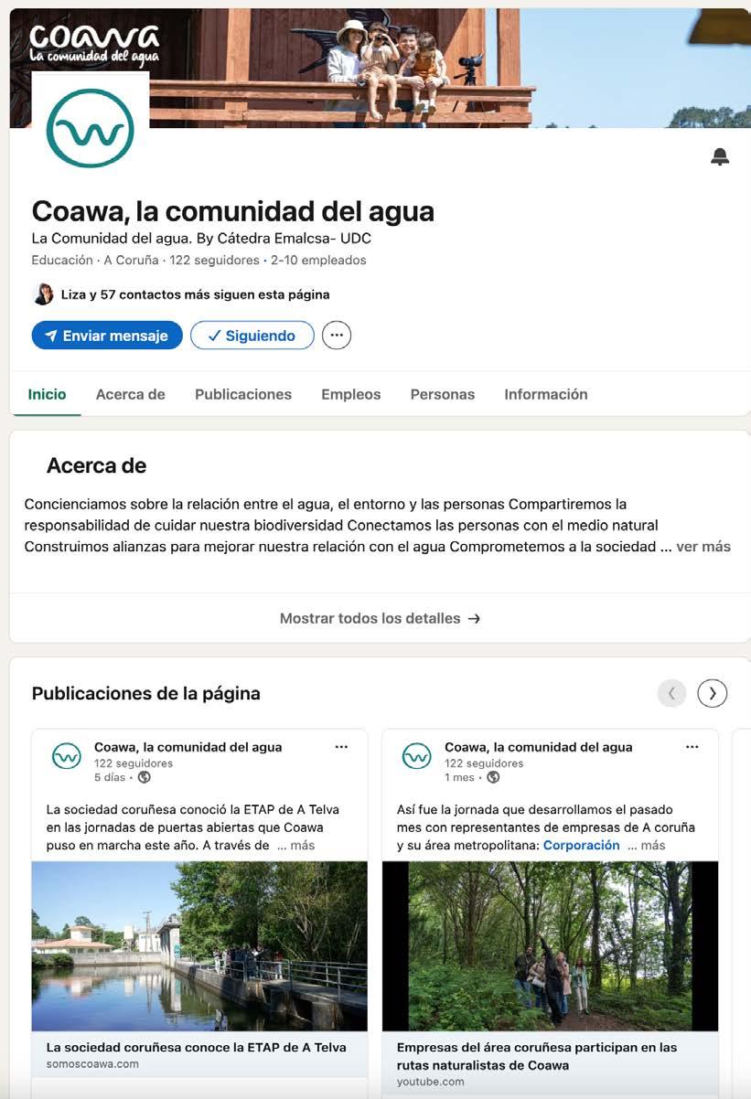 Coawa, La Comunidad del Agua es una iniciativa de la Cátedra EMALCSA-UDC que nace con el propósito de constituirse en una comunidad que aglutine a todos los agentes que están involucrados en la conservación del medio para garantizar el bienestar de las personas. No podemos tener salud sin agua de calidad, y el agua de calidad está íntimamente relacionada con un medio ambiente sano.