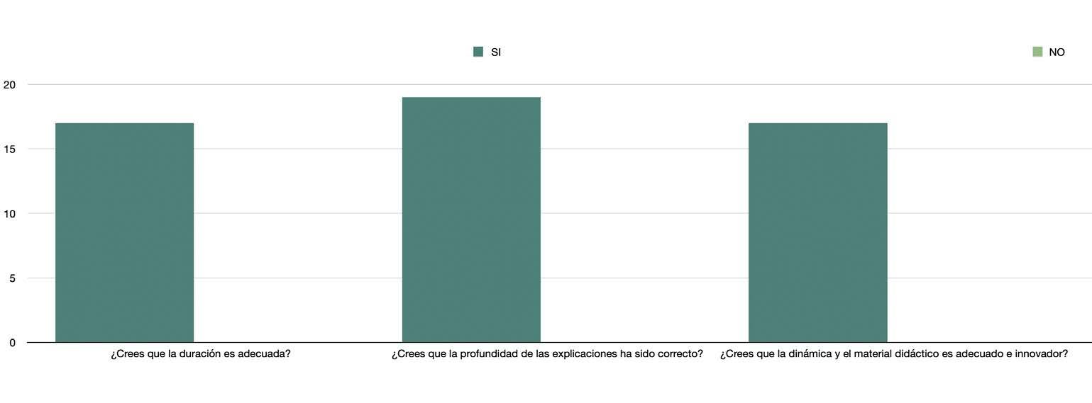 Realizamos un cuestionario de evaluación de todos los programas formativos. Dicho formulario fue anónimo y se realizó al terminar cada una de las actividades.