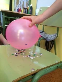 3. Frota el globo contra tu cabello y acércalo a los pedacitos de papel, pero sin tocarlos.