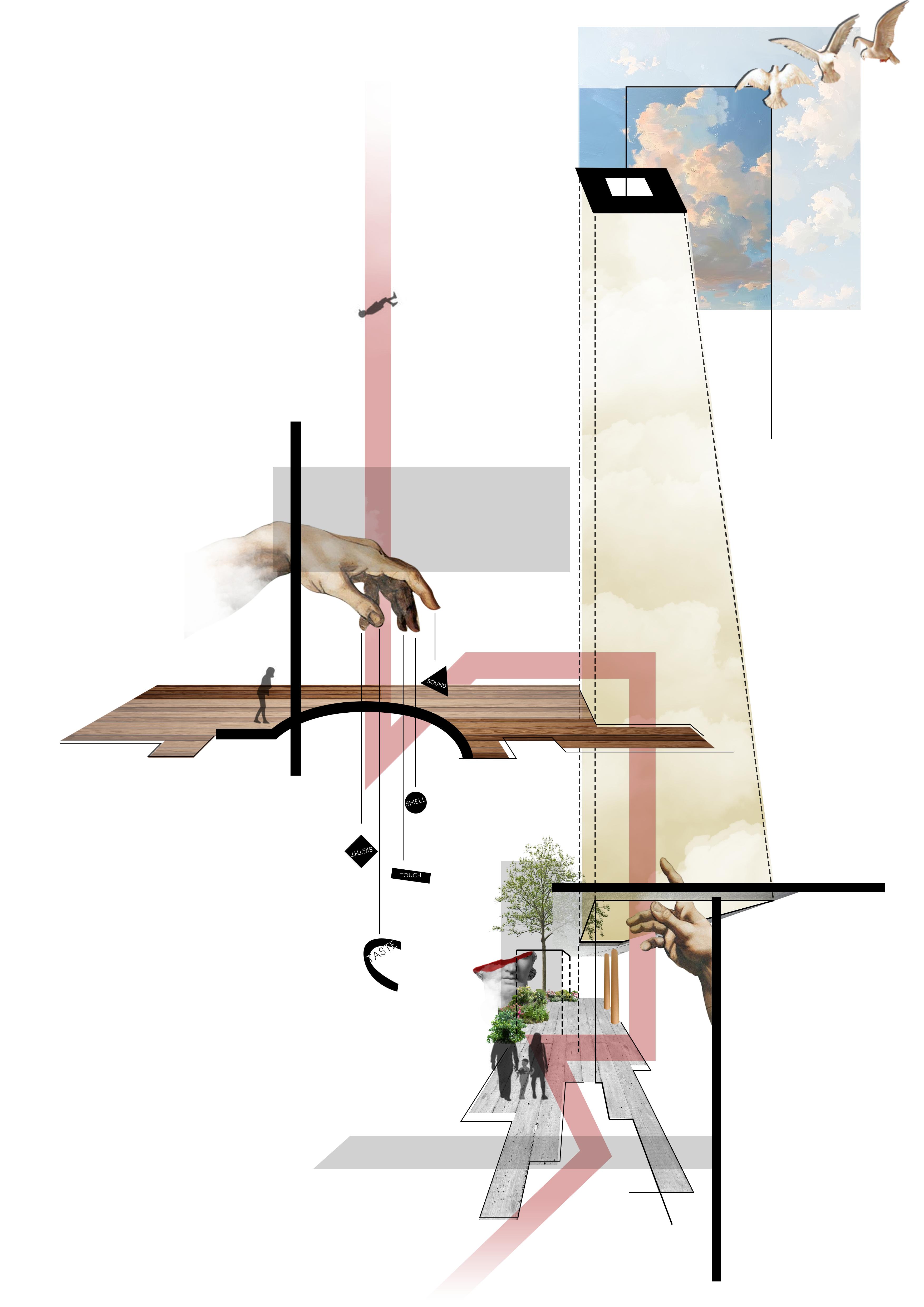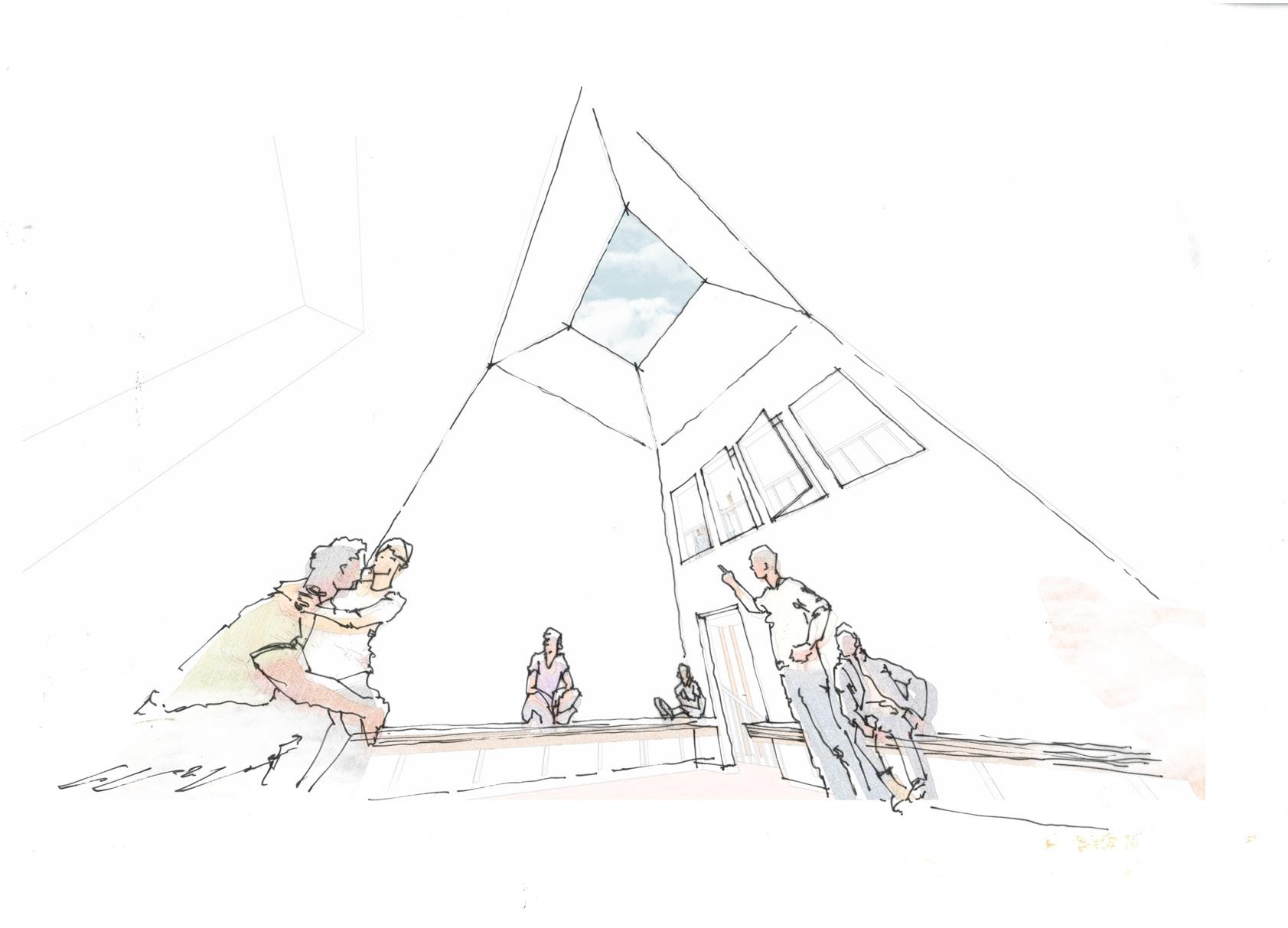 WHERE THRE TOP OF THE BUILDING WILL BECOME THE BRIDGE BETWEEN KNOWLEDGE EXCHANGE AND FRAMING OF THE SURROUNDING CONTEXT FROM ANOTHER PERSPECTIVE.. CONNECTING THEUNIVERISTY TO THE CITY AND THE CITY BACK TO THE UNIVERISTY.