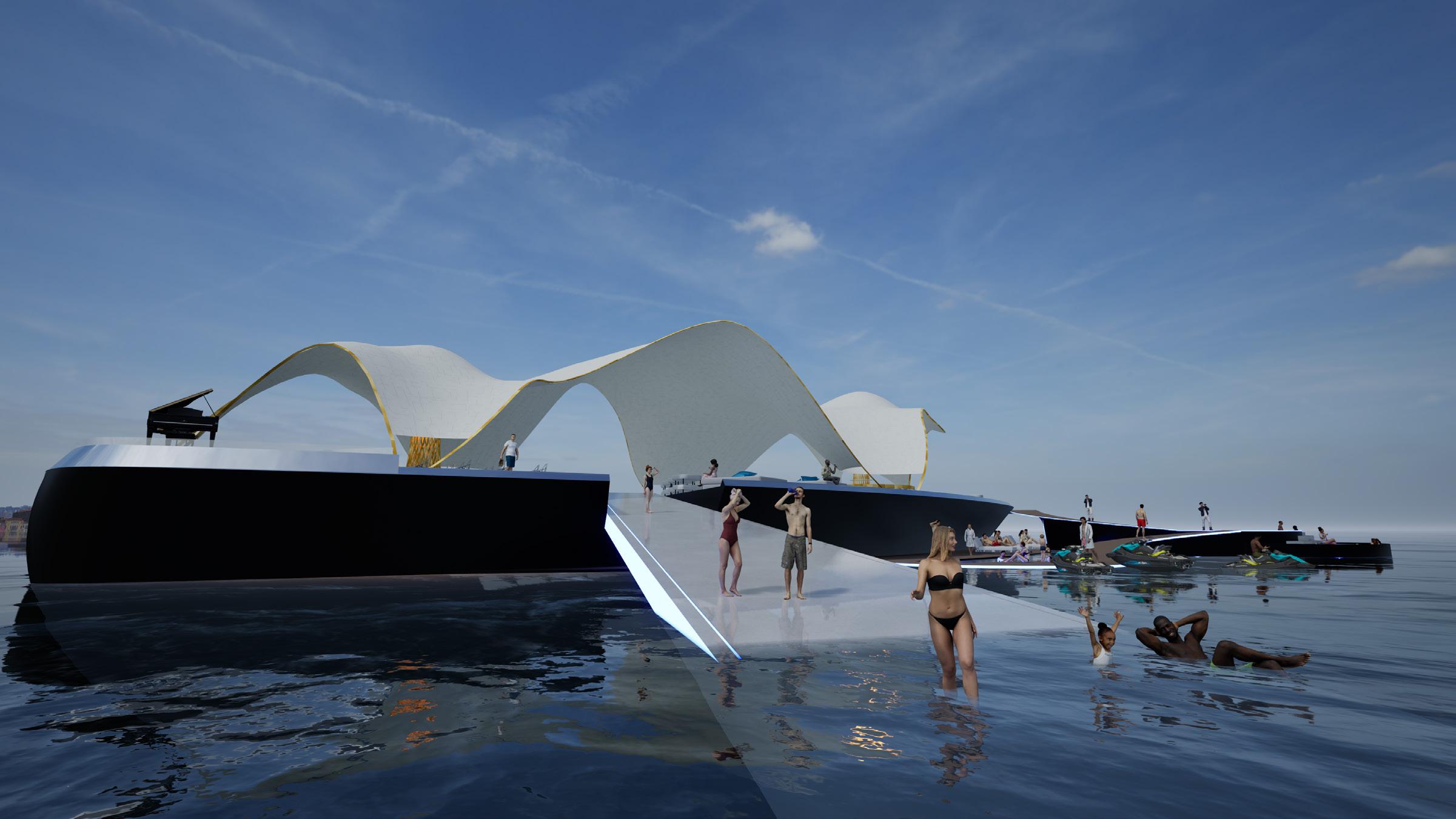 This project proposes a floating architecture in the heart of MonteCarlo’s Fashion week - where fashion is not staged against nature, but within it.