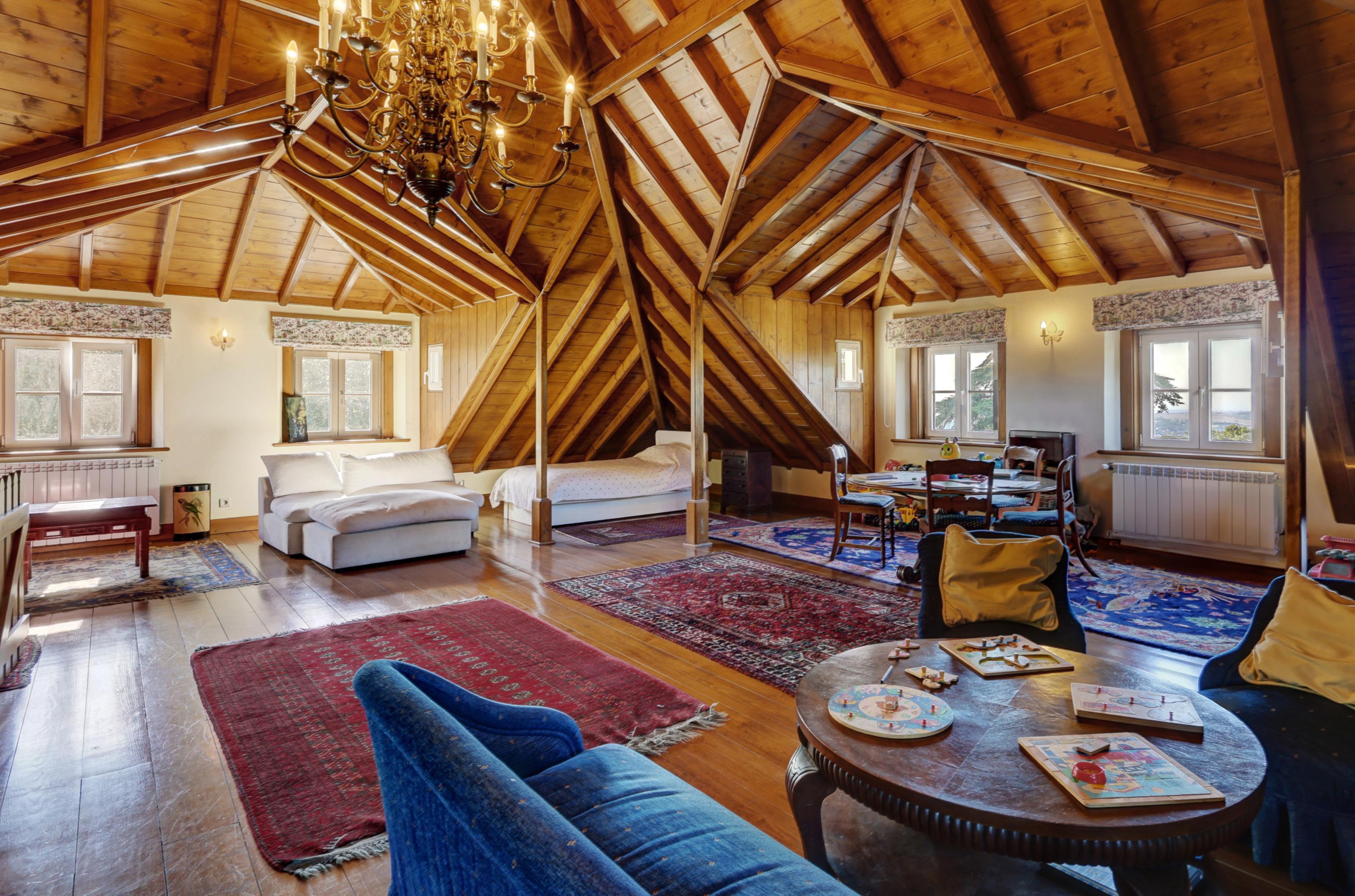 The main house, spanning 888 sqm, is spread over four floors with 3.5 meters ceiling height. The top floor