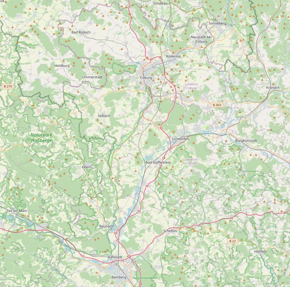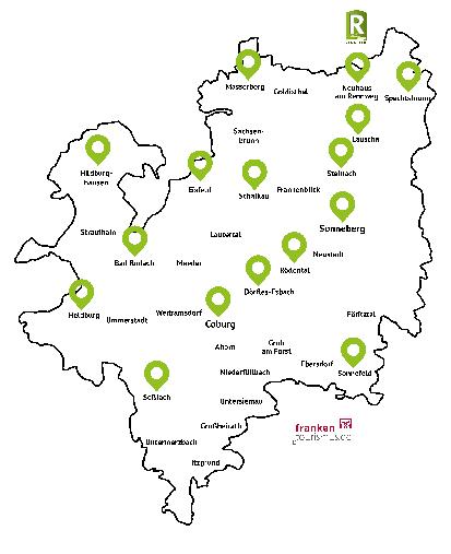 Gestaltung: Tourismusregion Coburg.Rennsteig e.V., Die Kartenausschnitte werden freundlich zur Verfügung gestellt von www.openstreetmap.org und verwendet unter Einhaltung der Lizenzbedingungen