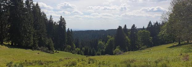 Immer deutlicher stechen jetzt die Panoramaaussichten über das Coburger Land ins Auge, für die sich der Anstieg allemal lohnt. Pausen sind auf diesem Abschnitt mehr als gewünscht.