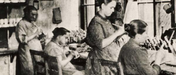 Arbeiter beim Einsetzen von Puppenaugen, 1911