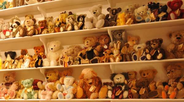Im Ladengeschäft des Familienbetriebs gibt es für alle Teddyfreunde eine große Auswahl an traditionellen Holzwollbären, weichgestopften Teddybären, limitierten Künstlerbären, Miniaturbären, Schlüsselanhängern und Teddybastelsets.