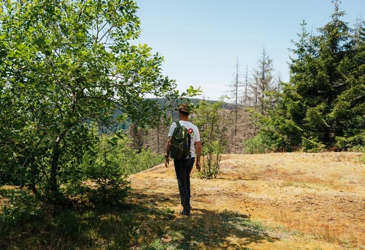 Vom Naturparkinformationszentrum (NIZ) Spechtsbrunn führt diese leichte Tour zunächst ein kurzes Stück über den Rennsteig zur thüringischbayerischen Landesgrenze. Dort findet man zwei Informationstafeln zur DDR-Geschichte und der innerdeutschen Grenze. Daraufhin folgt man dem Abzweig zum Altjägermoor in ein herrliches Waldstück hinein. Nachdem man eine Straße überquert hat, führt der Weg auf einem kleinen Trampelpfad bergauf, der den Beginn des Grenzstreifens markiert. Obwohl sich die Natur bereits große Teile des Grenzstreifens zurückerobert hat, merkt man ab jetzt beim Gehen teilweise noch die unter der Flora versteckt liegenden Betonplatten des Kolonnenwegs. Durch dichtbewachsenen Jungwald führt auf der anderen Seite ein schmaler Pfad wieder nach unten. Hier erreicht man eine Freifläche und kann wunderbar das Grüne Band bestaunen, ein Wanderweg, der sich entlang der 1.193 km ehemaligen innerdeutschen Grenze erstreckt. Von hier aus folgt man dem Lutherweg zurück zum Ausgangspunkt.