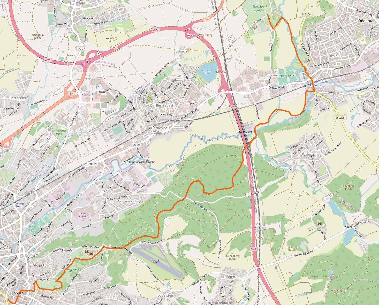 • Das Grüne Band in Coburg.Rennsteig: Von Bad Rodach nach Bad Colberg (11 km)