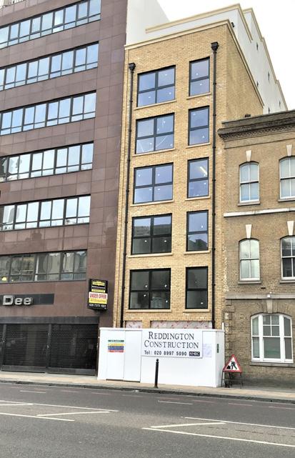 Northdown Street, Kings Cross, involved the demolition of an existing public house and the construction of a new building comprising nine residential units above ground floor commercial space. The scheme included a substantial singlestorey basement excavation, followed by a full in-house fitout once the structure was complete and the building made watertight. This was a logistically complex project, delivered on a tight site bordered by occupied residential properties on both sides.
