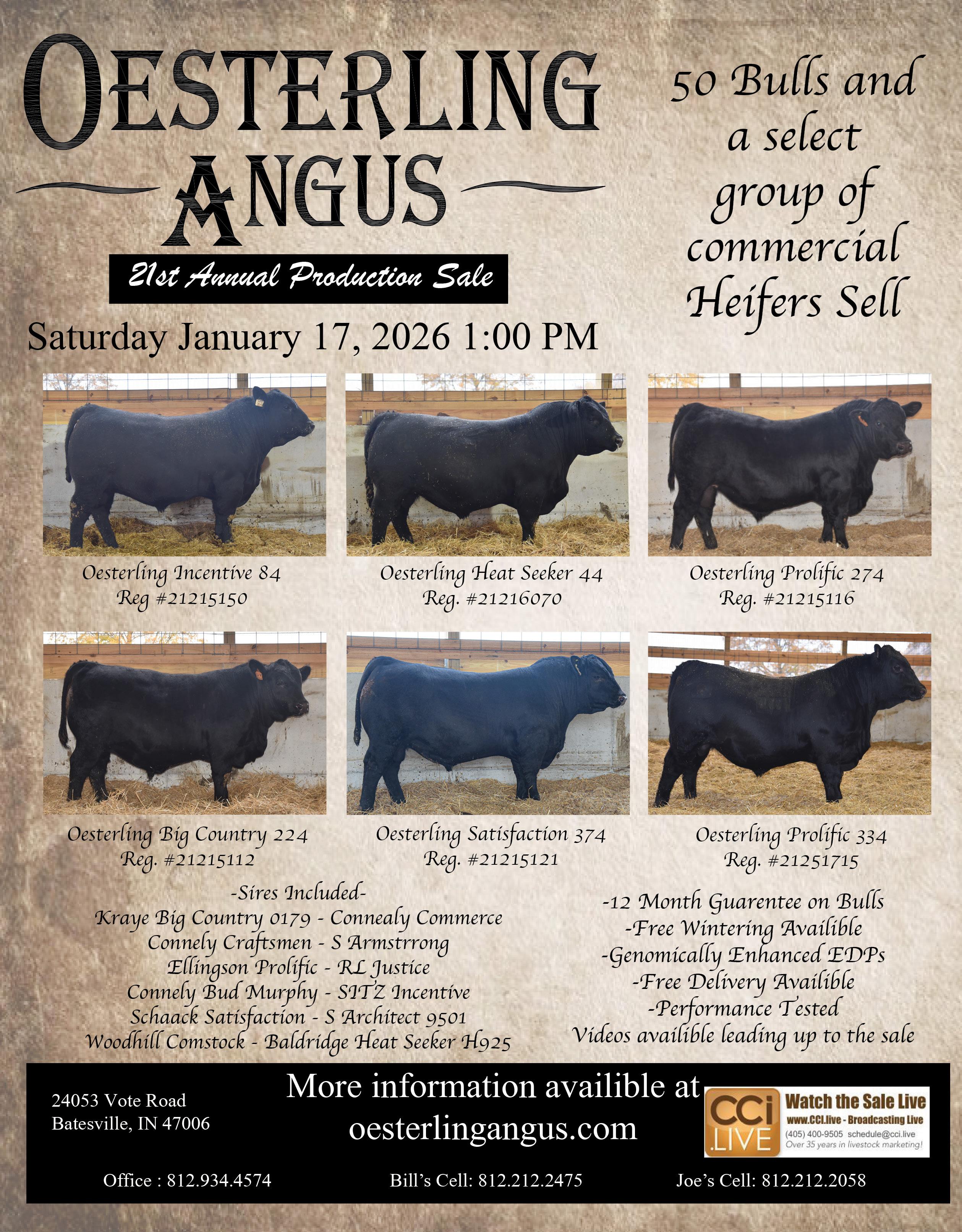 Oesterling Angus 21st Annual Production Sale, Batesville, IN