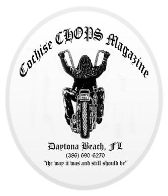 This magazine is NOT politically correct!!! We deal with mainly old bikes, old cars, old people and young folks who have their heads on straight, who are tired of status quo, and walking on egg shells so as to keep the peace. Socialism & Liberalism SUCKS!!! We bleed Red, White & Blue!!! cochisechops@yahoo.com or (386) 690-6270 Our New Salesman, Shiny (386) 278-3370 âWhere Old School âNEVERâ Went Out Of Style!!!â