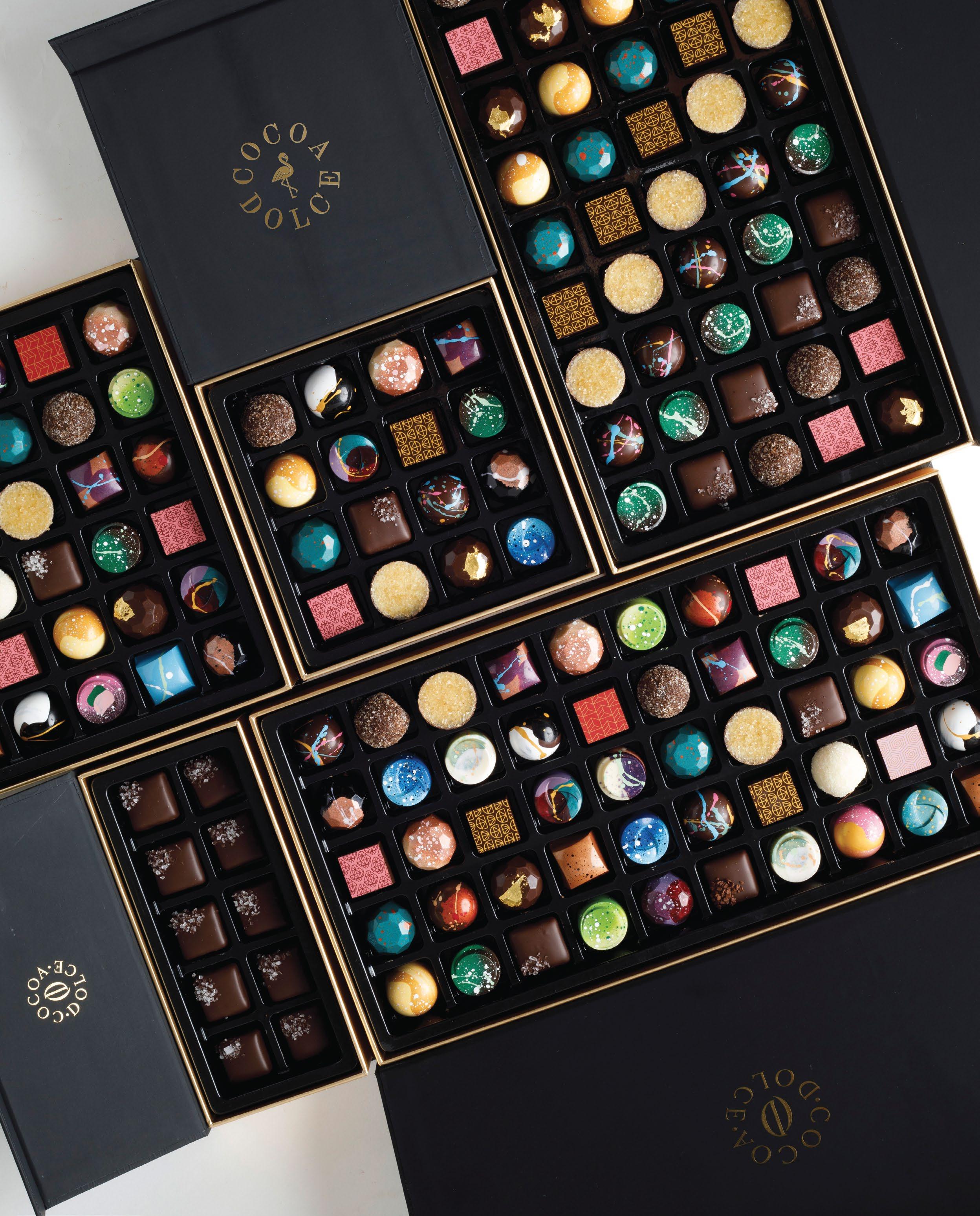 For nearly 20 years, Cocoa Dolce has combined quality and tradition. We pride our selves on of fering a truly indulgent experience with our handcraf ted, exquisite chocolates. At our core, we believe in the purity of ingredients, ensuring each bite is a celebration of freshness and f lavo r . Whether it’s a token of appreciation for clients, colleagues, or loved ones, our custom gif ting solutions provide the perfect blend of sophistication and sweetness. Discover the artistry behind our chocolates and elevate your gif ting experience with Cocoa Dolce.