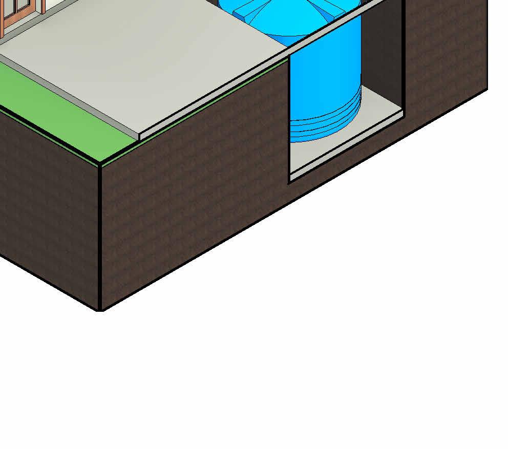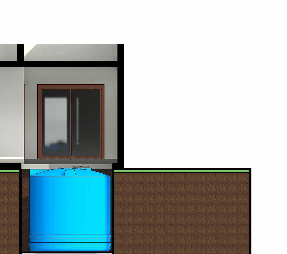 El volumen total fue de 6,720 lts, pero se redondeará para disponer de una sola cisterna de 10,000 lts.. Se optó por adquirir de la marca rotoplas con un precio de $49,000. Con las medidas de 2.43mts de alto y 2.38 mts de diámetro; pensado para satisfacer hasta 9 usuarios.