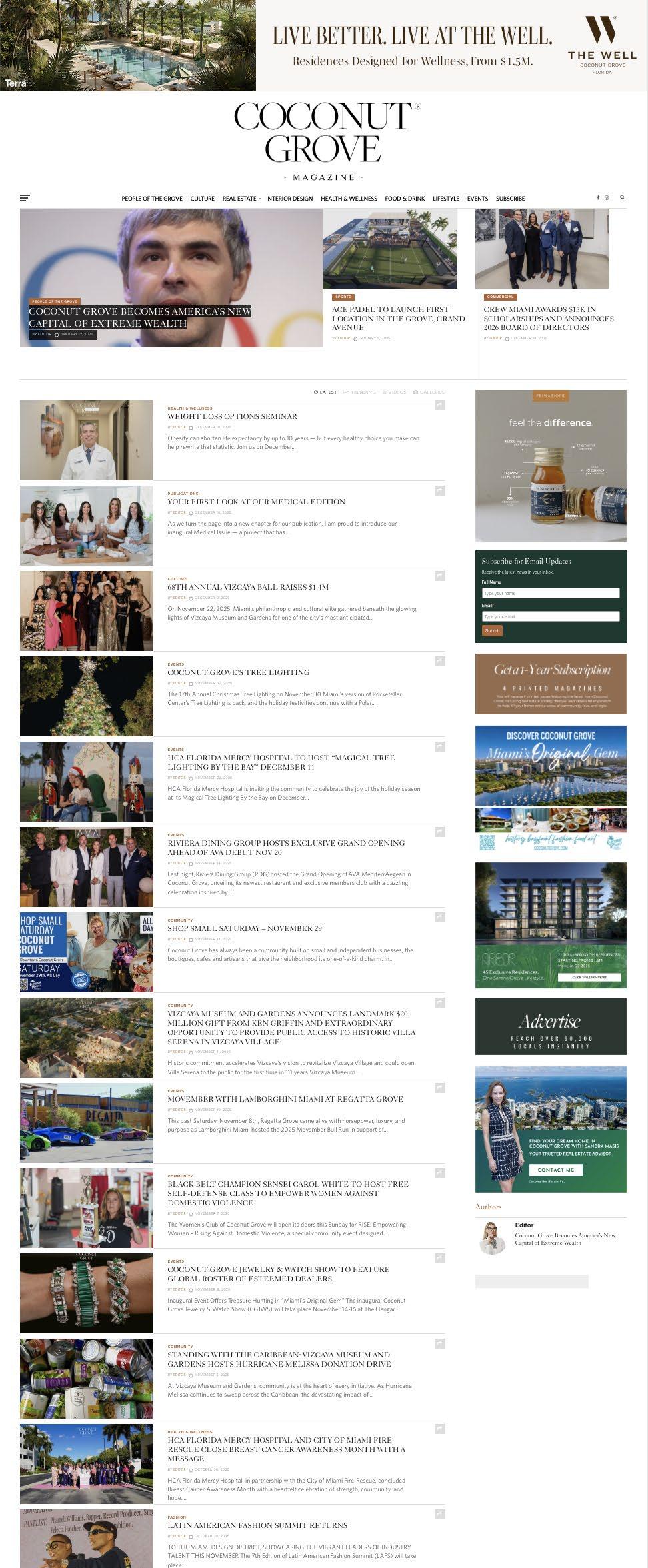 Our digital platform constantly entertains visitors and travellers from all over the world with inspiring stories about the influential community and lifestyle, destinations near and far, contributes exciting experiences about the lovely Coconut Grove, and offers behind-thescenes looks at the fascinating world of real estate.