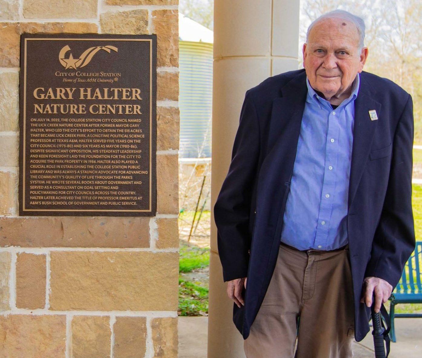 The City of College Station extends its heartfelt sympathies and deepest condolences to the family and friends of former Mayor Gary Halter, who passed away on Saturday, Nov. 8 at age 84. A longtime political science professor at Texas A&M, Halter served five years on the city council (1975-80) and six years as mayor (1980-86). He spearheaded the effort to acquire the 523 acres that became Lick Creek Park, and in 2022, the park’s nature center was named the Gary Halter Nature Center. Halter also played a key role in establishing the College Station Public Library and was a professor emeritus at Texas A&M’s Bush School of Government and Public Service.