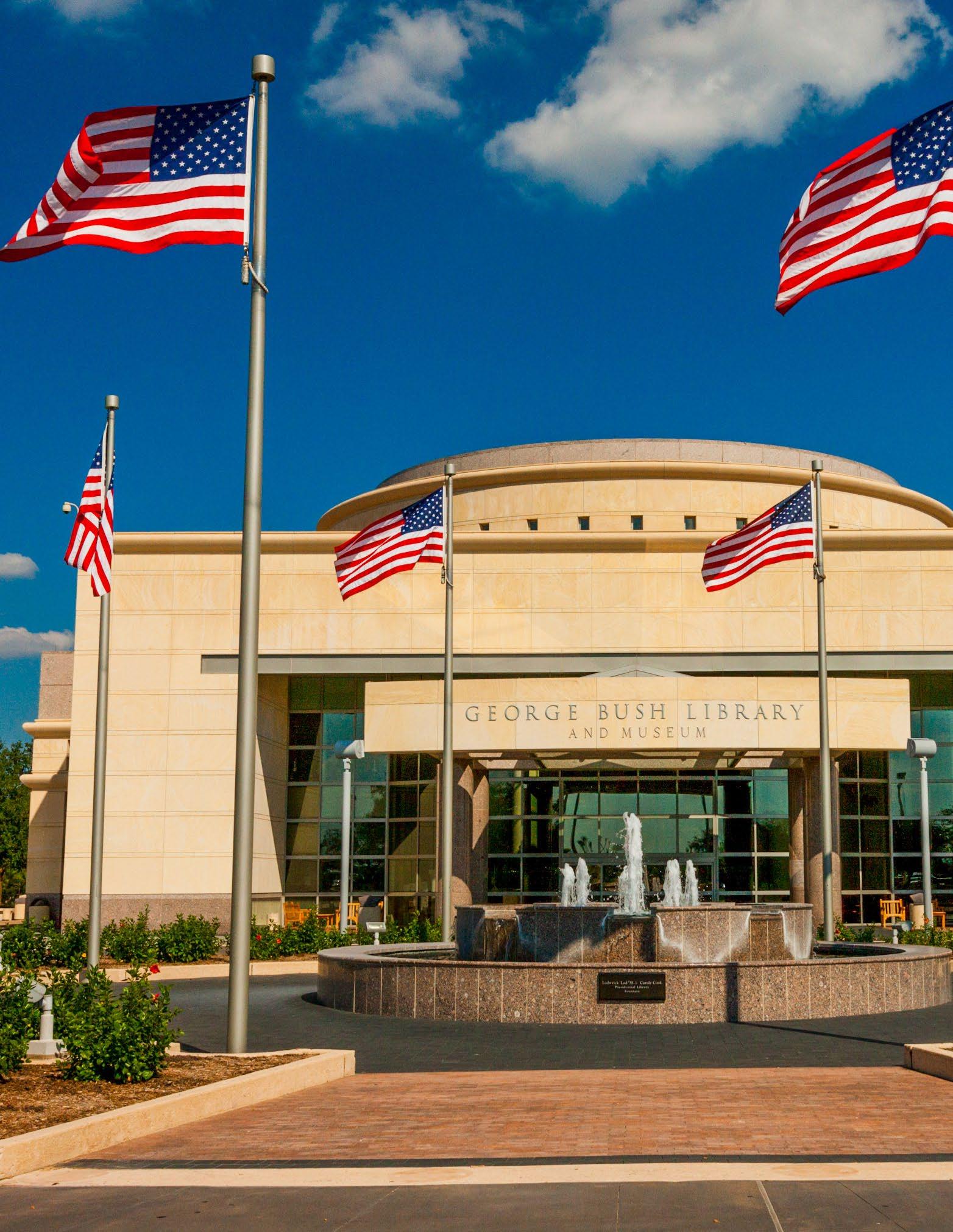 Whether you're visiting for a Texas A&M sporting event, a conference, a family vacation, or just exploring as a local, this destination is a must-see. The Bush Library and Museum is a treasure trove for researchers, students, and families alike. Explore over 43 million pages of historical documents, view thousands of artifacts, and discover stories of leadership and public service through the life and legacy of President George H. W. Bush. These materials provide an invaluable glimpse into the pivotal moments of late 20th-century history.