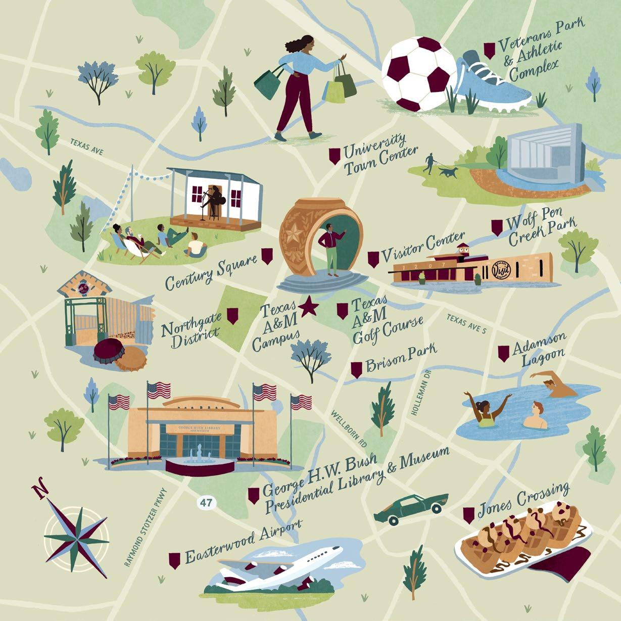 An illustrative journey across College Station, highlighting must-see landmarks and hidden gems. EAT Eats and Treats