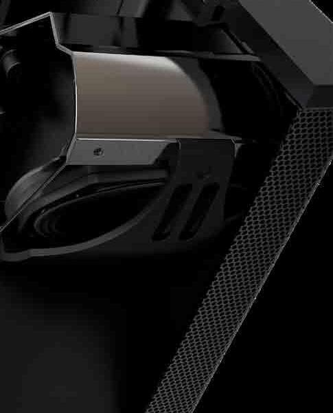 Putting an immense amount of power into a speaker cabinet required a new design and a new thermal concept: the front baffle and vents are made from aluminium with all