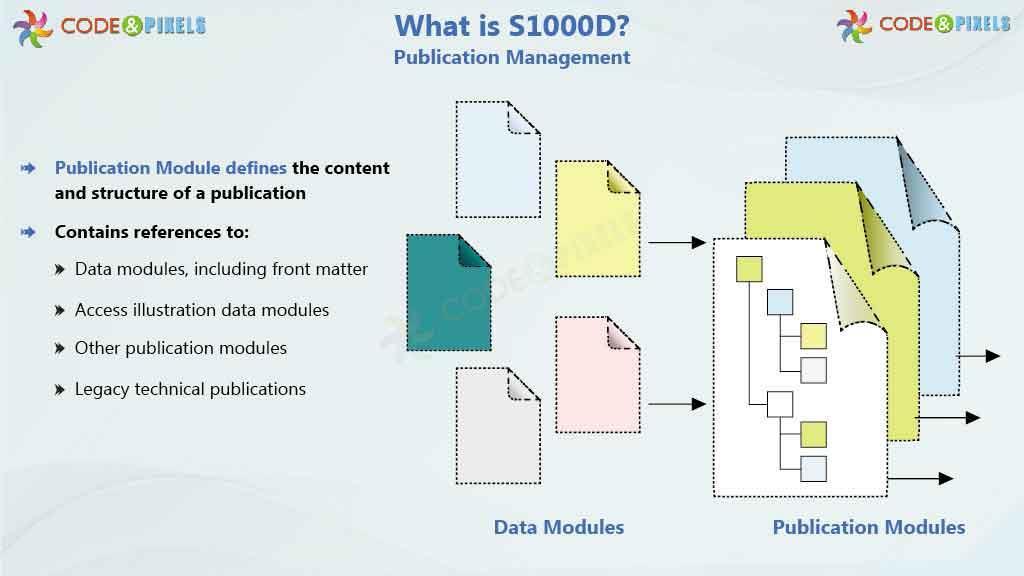 and its basic principle 1. Content or data produced following the standard is in Data Module 2. This data module is the smallest and self-contained content or data unit within a technical publication 3. A data module must have sense and meaning when viewed without any supporting data other than images and diagrams 4. These data modules will be stored and managed in CSDB, Common Source DataBase 5. Using this CSDB we can publish output in a page-oriented or Interactive Electronic Technical Manual 6. These Individual data modules are re-usable components and can be used repeatedly in an output.
