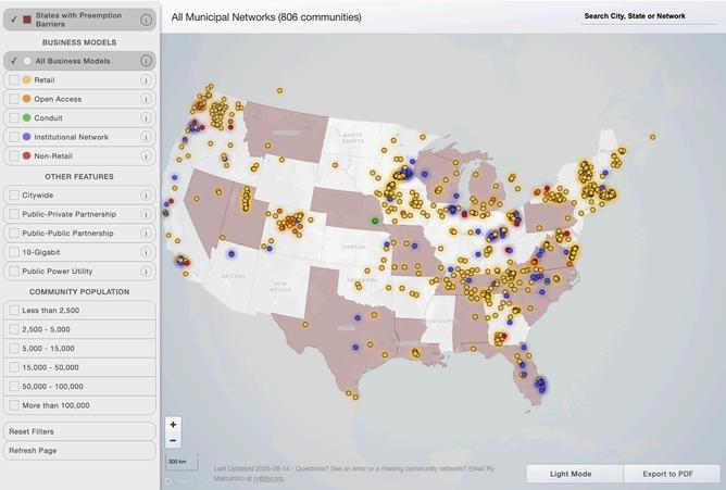 Similar wireless mesh networks have had great success in cities such as NYC Mesh in New York and the Equitable Internet Initiative by the Detroit Community Tech Project in Detroit. Larger municipal broadband projects have had great success in cities such as Chattanooga, TN, Holland, MI, and Fort Collins. Likewise, Baltimore has recently announced their ambitious plans to launch an open access network owned by the city that will result in discounted internet plans for local residents. Municipal and community based networks are on the rise with over 400 across the country. In 2024, the Institute for Local Self Reliance (ILSR) launched an interactive map of these networks through their Community Networks initiative.