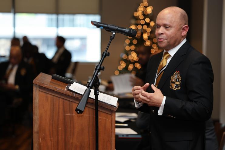King, who attended undergraduate school at the University of Kansas, reflected on what inspired him to want to become a member of the fraternity. “As I think about it, one of the reasons that I wanted to become an Alpha member is that growing up into adulthood, as I looked around, the special men who were having a positive impact in the community were Alpha men. I remember reading about a man going around the country fighting to improve the educational opportunities for Black people. His name was Thurgood Marshall, and I learned that he was an Alpha man. That type of leadership and action inspired me to become an Alpha man as well,” added King.